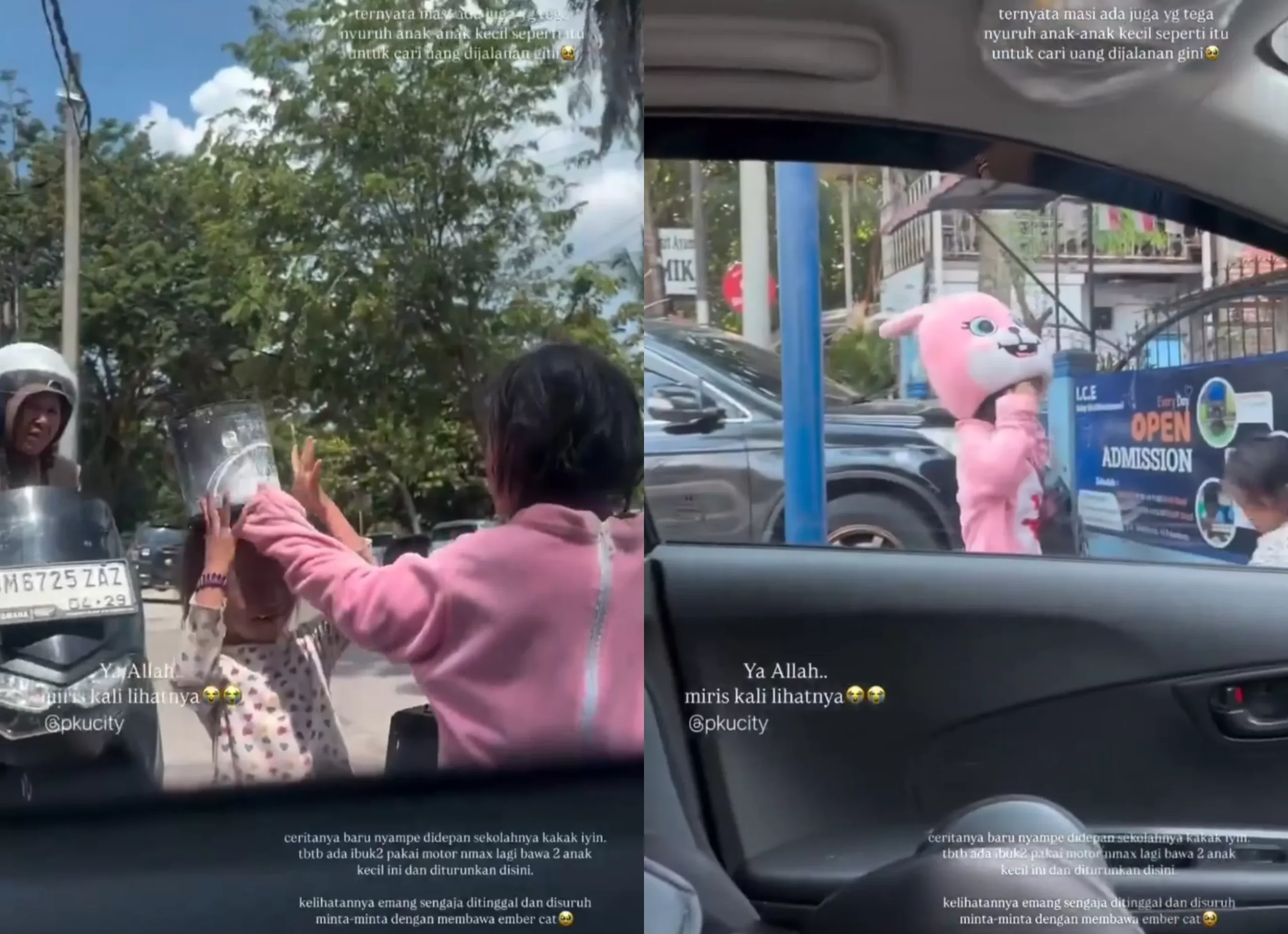 Dalam video tersebut, terlihat jelas sang ibu yang mengendarai motor Yamaha NMax berhenti di sisi jalan yang ramai. Ia kemudian menurunkan dua anak, yang diduga anak kandungnya, salah satunya mengenakan kostum karakter kartun berwarna pink dan membawa bakul kecil, untuk meminta-minta kepada pengendara yang lewat. Setelah itu, ibu tersebut pergi meninggalkan anak-anaknya tanpa pengawasan.