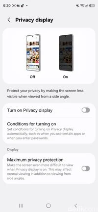 Samsung menyediakan beberapa skenario penggunaan Privacy Display. Mode standar sudah cukup efektif menyamarkan tampilan layar tanpa terasa mengganggu kualitas visual. Bagi pengguna yang sangat paranoid dengan pengintaian, tersedia opsi tingkat privasi maksimum yang membuat layar tampak sepenuhnya gelap dari sudut miring. Pengguna juga dapat mengatur agar Privacy Display aktif secara otomatis dalam kondisi tertentu, seperti saat menerima notifikasi penting, membuka aplikasi sensitif (misalnya aplikasi perbankan), atau saat memasukkan PIN, pola, atau kata sandi.
