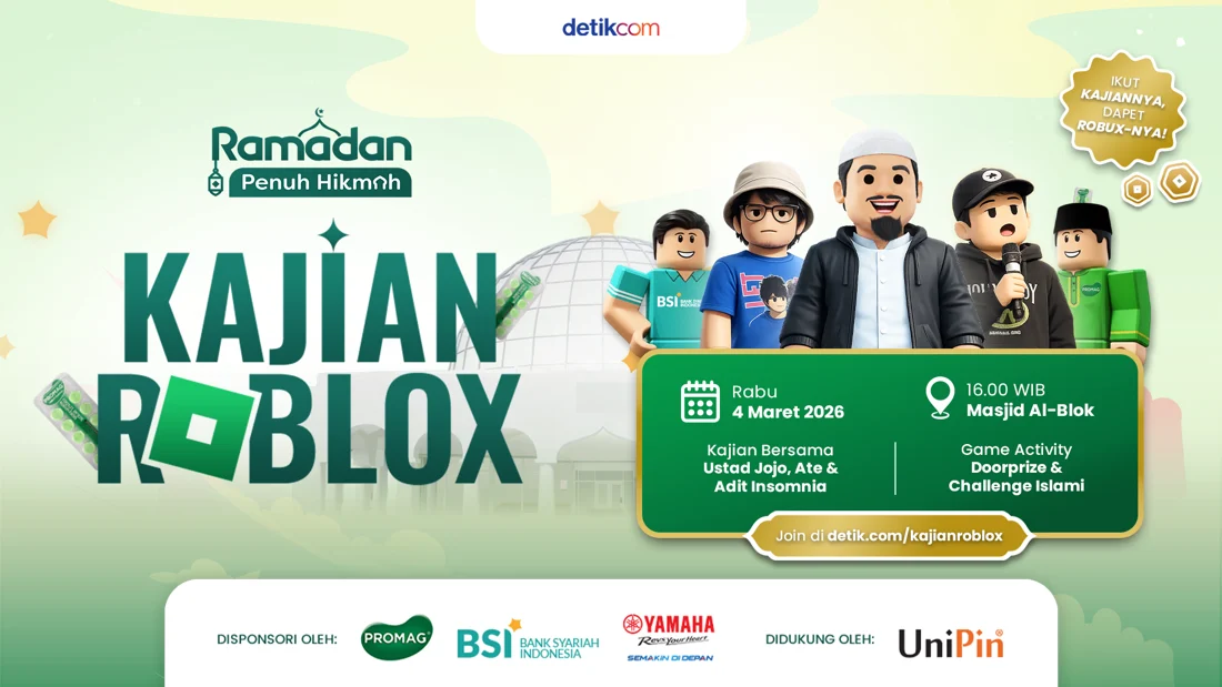 Bagi Anda yang berhalangan hadir secara fisik atau tidak mendapatkan tempat dalam sesi Kajian Roblox kali ini, jangan khawatir. Keseruan acara tetap dapat disaksikan secara daring. Anda bisa mengikuti siaran langsung melalui platform detikcom, serta akun Instagram resmi @detikcom dan @detikINET.