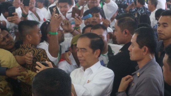 Saat itu, Jokowi yang mengenakan kemeja putih lengan panjang menyapa ribuan relawan yang hadir dan berfoto bersama.