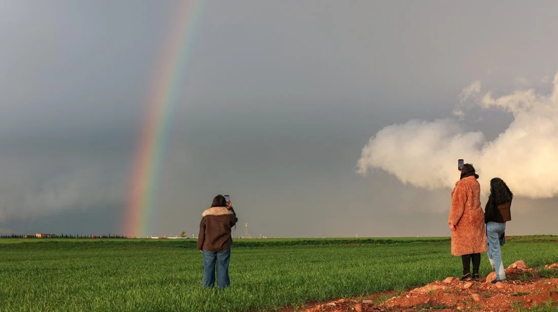 Di Qamishli, kombinasi antara hujan deras yang baru saja reda dan pancaran sinar matahari yang mulai menyinari kembali, menciptakan kondisi ideal bagi terbentuknya pelangi. Munculnya pelangi ini memberikan nuansa berbeda bagi masyarakat setempat. Setelah diguyur hujan, langit yang tadinya kelabu kini dihiasi oleh gradasi warna yang menakjubkan.