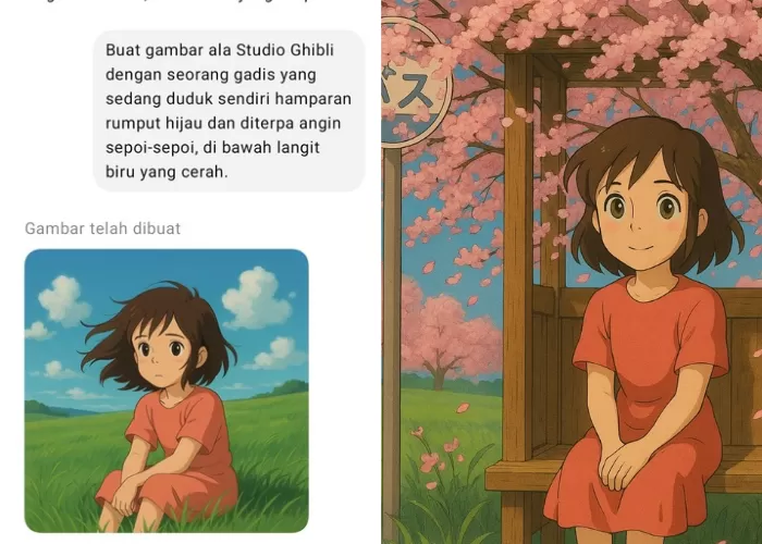 Setelah ChatGPT menghasilkan gambar, Anda dapat melakukan penyempurnaan lebih lanjut. Minta ChatGPT untuk menambahkan detail, mengubah warna, atau menyesuaikan pencahayaan agar sesuai dengan gaya khas Studio Ghibli. Misalnya, Anda dapat meminta: “Tambahkan dedaunan hijau yang lebat di sekitar gadis itu” atau “Buat warna langit lebih cerah dan lebih biru.”