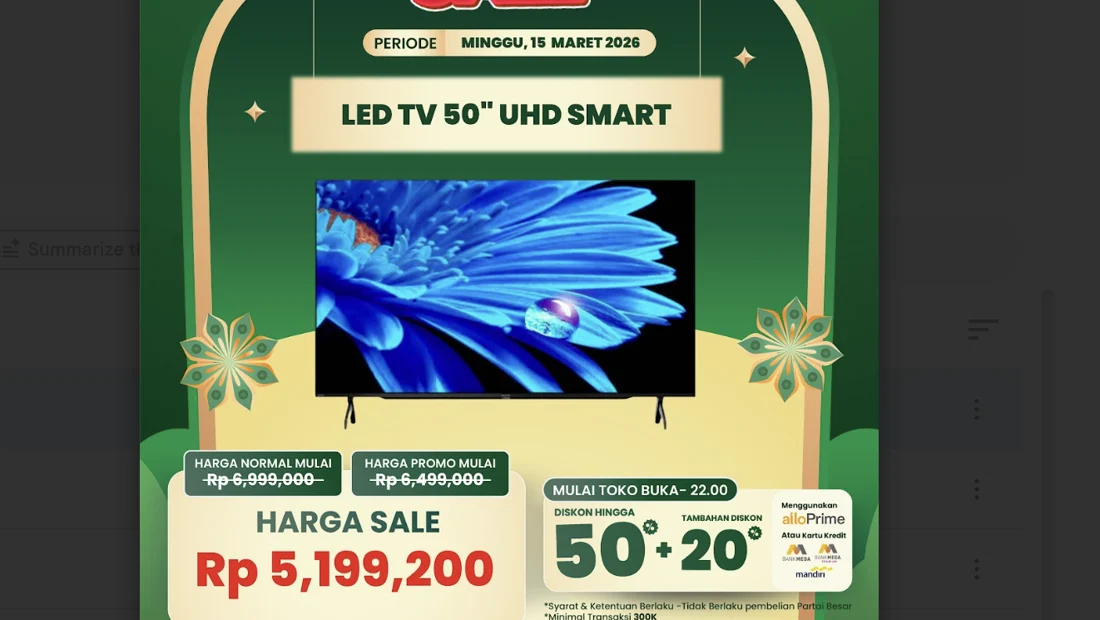 Transmart Full Day Sale dikenal dengan diskonnya yang spektakuler, terutama untuk kategori barang elektronik. Kali ini, Smart TV 50 inci UHD menjadi salah satu bintang utama yang dipangkas harganya secara signifikan.